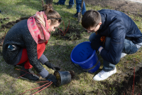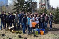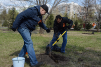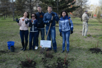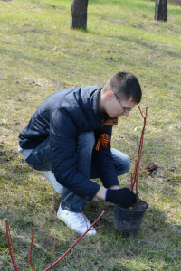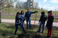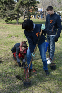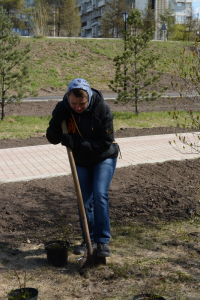Сегодня, 7 мая, сотрудники авиакомпании "АэроГео" собрались в сквере Победителей, чтобы высадить деревца и кустарники в честь юбилея Великой Победы. Прекрасная погода, приготовления к 9 мая, все это позволило ощутить приближение праздника. Сотрудники авиакомпании - летный состав, техники, администрация, вооружившись лопатами, дружно копали, высаживали кустарники и поливали их.