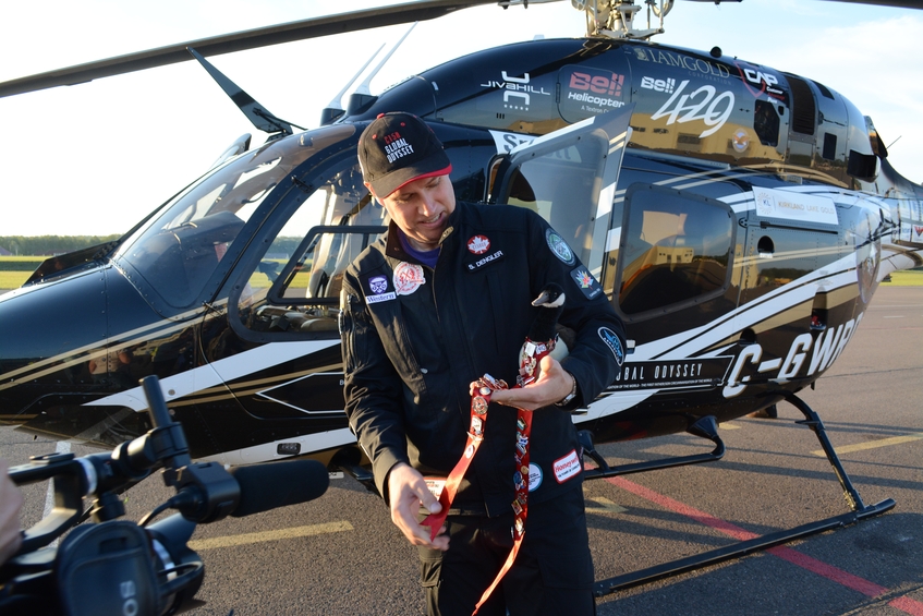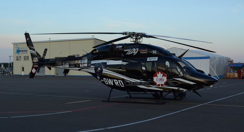На борту Bell 429 Global Ranger пилоты-любители отец и сын Стивен и Боб Денглеры и бывший лётчик-испытатель Роб Макдафф (Канада). Самому опытному путешественнику, улыбчивому Бобу, уже 77 лет!