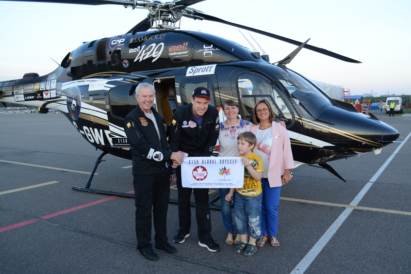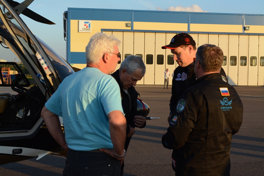 В Красноярск на посадочную площадку авиакомпании «АэроГео» прибыли участники кругосветной вертолётной экспедиции C150GO («Глобальная Одиссея»). Для сотрудников авиакомпании это была долгожданная встреча, так как мы следим за путешествием канадцев уже почти месяц.
