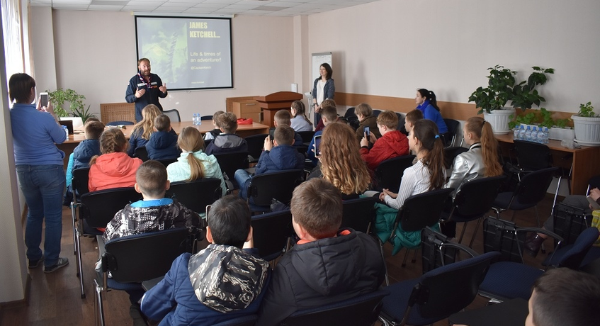 Джеймс отлично общался с детьми, которые в свою очередь были очень рады поговорить с ним на английском языке и узнать о его приключениях. «Мечты сбываются. Мне очень важно донести это до ребят. Если человек захочет, он может добиться очень многого. Наша планета даёт прекрасные шансы для этого. В нашей экспедиции самое захватывающее — это путешествие по России. Она такая огромная, я даже и не представлял, насколько. И здесь очень хорошие и добрые люди», - сказал Джеймс.