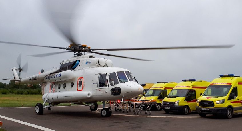 Вертолет оборудован медицинским реанимационным модулем, который оснащен функциональной кроватью, дефибриллятором, аппаратом искусственной вентиляции легких, шприцами-дозаторами кислородом. Благодаря этому у врачей есть возможность проводить реанимационные мероприятия уже на борту вертолета.