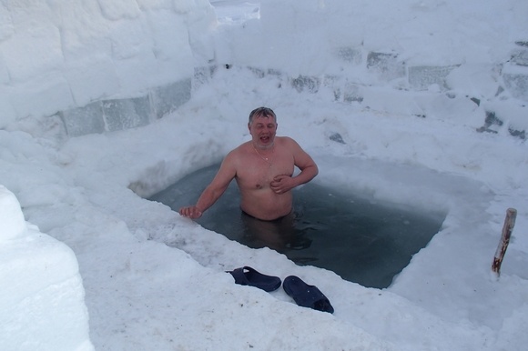 Белые медведи — нередкие гости на льдине, но и они удивились бы, увидев как сибиряки купаются в водах