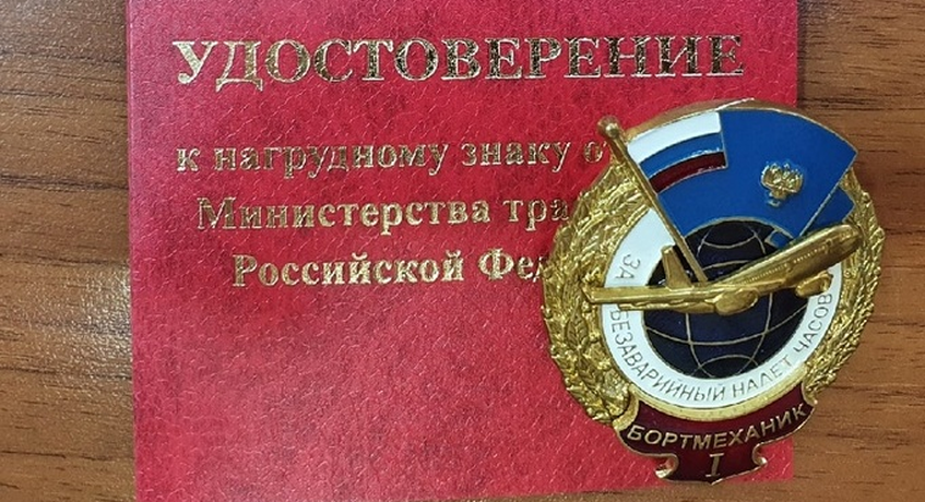 Нагрудный знак отличия «За безаварийный налет часов I степени с планкой «Бортмеханик» получили Лосев Виктор Васильевич – старший бортмеханик летного отряда и Назимов Михаил Анатольевич – бортмеханик ВС Ми-8 авиакомпании «АэроГео».