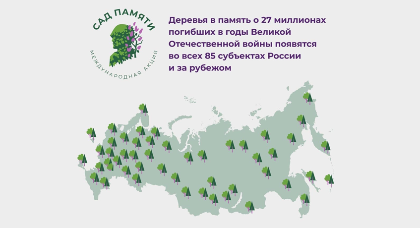 Международная акция «Сад памяти» организована АНО «Сад Памяти», Всероссийским общественным движением «Волонтёры Победы» и Фондом памяти полководцев Победы при поддержке Минприроды России, Рослесхоза, а также Всероссийского общества охраны природы в рамках национального проекта «Экология».