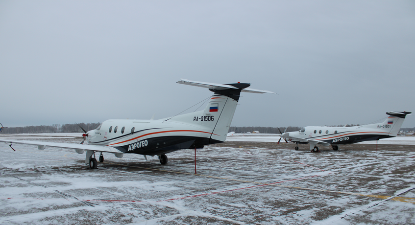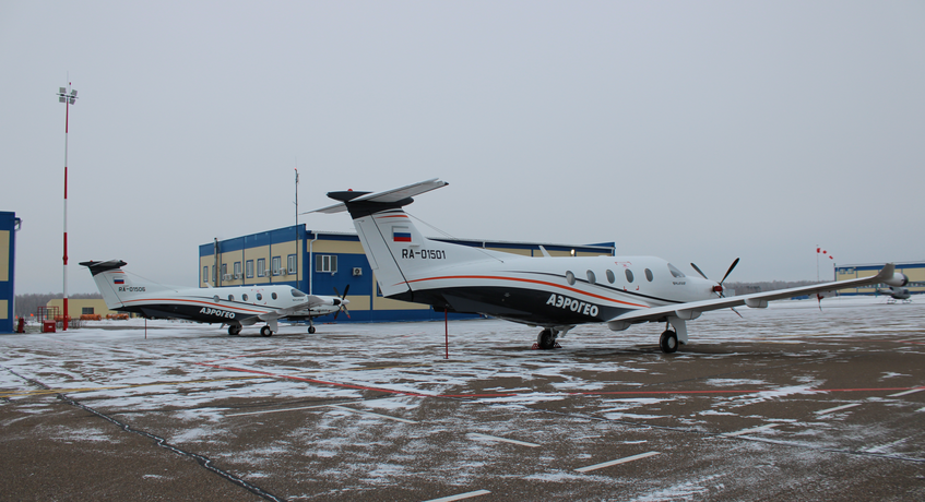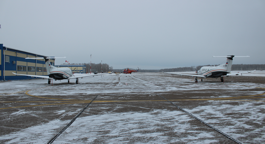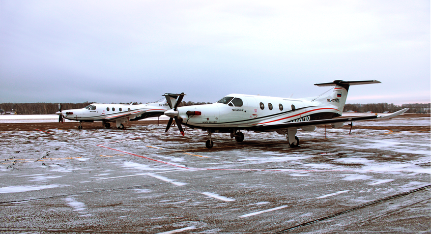 Два самолета Pilatus PC 12/47, принадлежащие авиакомпании «АэроГео», базируются на пп «Красноярск (Северный)», готовы к работе. Оба борта в фирменной ливрее авиакомпании.