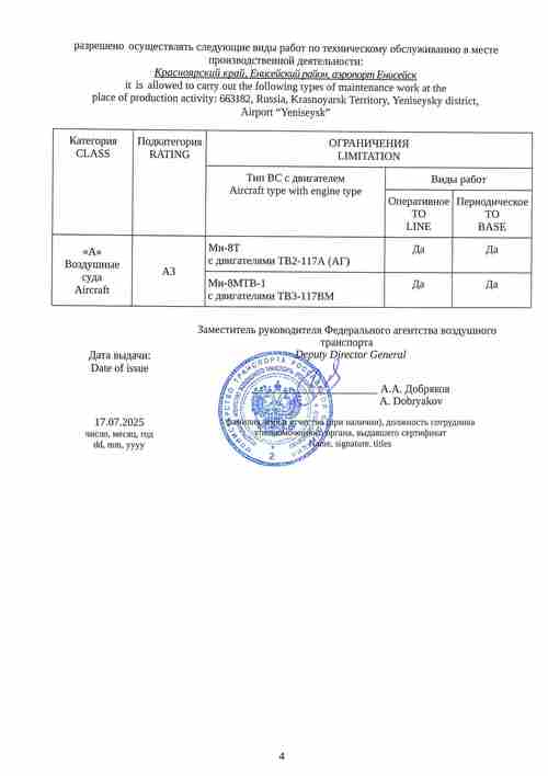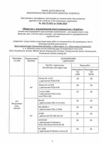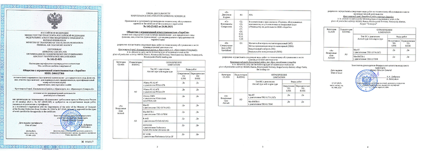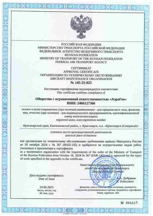 Наша авиакомпания ООО «АэроГео» в числе первых по России и второй в Красноярском крае 24.06.2025г. получила новый Сертификат по ТО №145-25-025, чем подтвердила высокий уровень внутренней организации, профессионализма и способность быстро выполнять поставленные задачи.