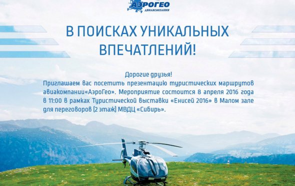 Приглашаем вас посетить презентацию туристических маршрутов красноярской авиакомпании "АэроГео".