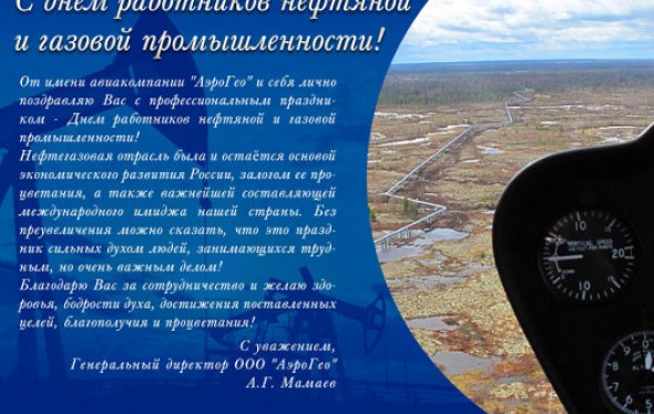 Авиакомпания «АэроГео» поздравляет всех работников нефтяной и газовой промышленности с профессиональным праздником!