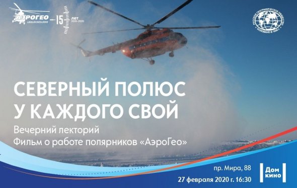 Авиакомпания «АэроГео» и Красноярское отделение Русского географического общества приглашают 27 февраля в Дом кино на вечерний лекторий, посвященный работе специалистов авиакомпании на Северном полюсе.