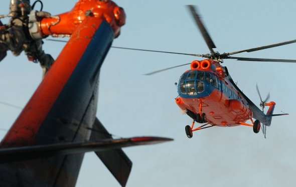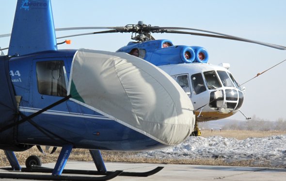 Вертолёт «АэроГео» работает в режиме дежурства на аэродроме Кодинска, перевозит персонал и грузы на вахты Севера, работает на подряде у компаний ООО ПКФ "КАТЭКАВИА" и ФГУП «Тува Авиа».