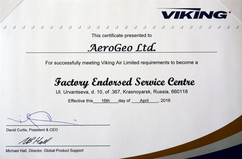 АэроГео - первый в России авторизованный Сервисный центр компании Viking Air