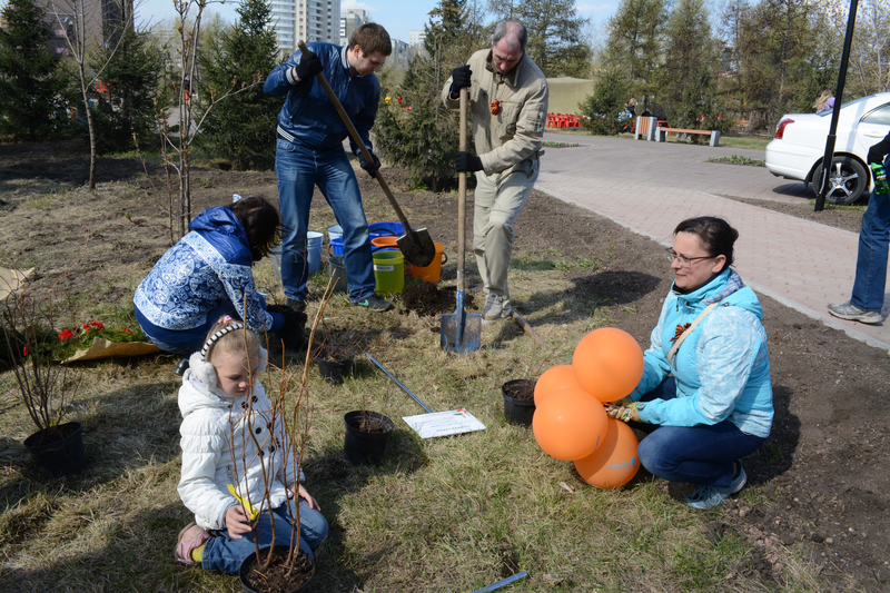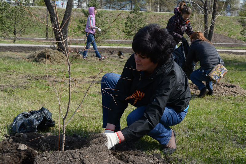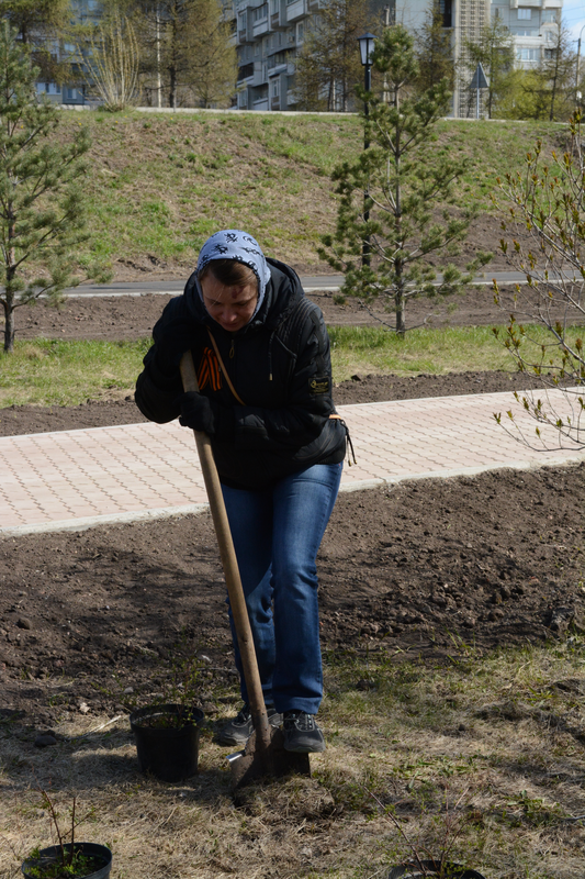 Сегодня, 7 мая, сотрудники авиакомпании "АэроГео" собрались в сквере Победителей, чтобы высадить деревца и кустарники в честь юбилея Великой Победы. Прекрасная погода, приготовления к 9 мая, все это позволило ощутить приближение праздника. Сотрудники авиакомпании - летный состав, техники, администрация, вооружившись лопатами, дружно копали, высаживали кустарники и поливали их.