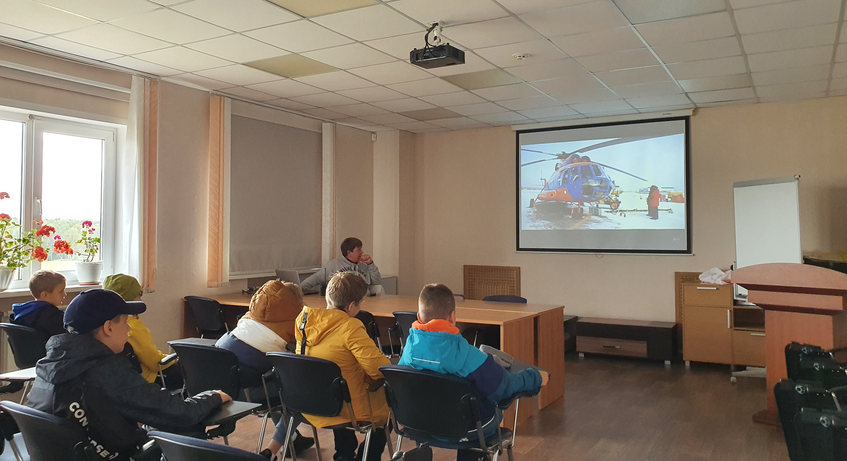Работники «АэроГео» подробно рассказали ребятам о грузах, которые перевозят и как это происходит, продемонстрировали специальное оборудование, используемое для этих целей. Кроме этого ребята узнали об экспедициях «Сезонная дрейфующая станция» на Северном полюсе и «Дуглас ждет!» - «Борт Тюрикова. Возвращение» и сделали много фотографий на память!