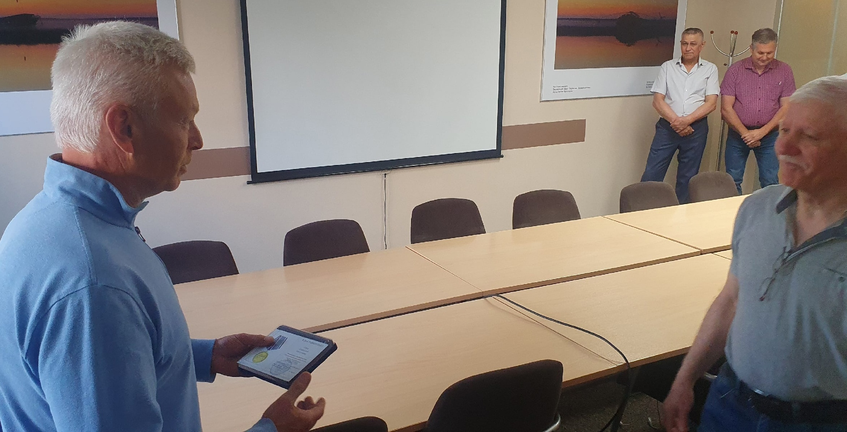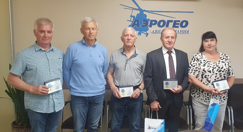 В торжественной обстановке Александр Мамаев – генеральный директор ООО «АэроГео» вручил награды сотрудникам авиакомпании:
