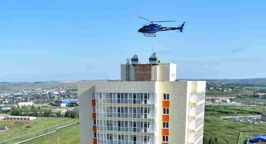 Вертолет AS350B3 авиакомпании «АэроГео» выполнил строительно-монтажные работы по установке оборудования по дымоудалению на крыше домов ЖК «Квадро» (г. Красноярск).