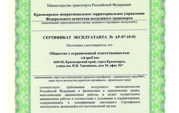 ООО «АэроГео» продлило Сертификат эксплуатанта на выполнение авиационных работ еще на три года, до 12 сентября 2022 года.