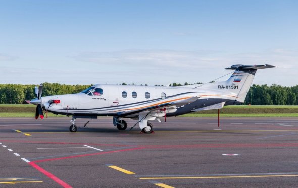 Самолет Pilatus PC 12/47 вернулся на посадочную площадку "Красноярск (Северный)" после прохождения технического обслуживания в Швейцарии