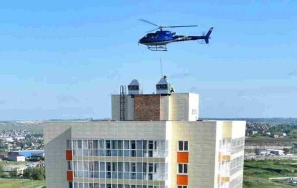 Вертолет AS350B3 авиакомпании «АэроГео» выполнил строительно-монтажные работы по установке оборудования по дымоудалению на крыше домов ЖК «Квадро» (г. Красноярск).