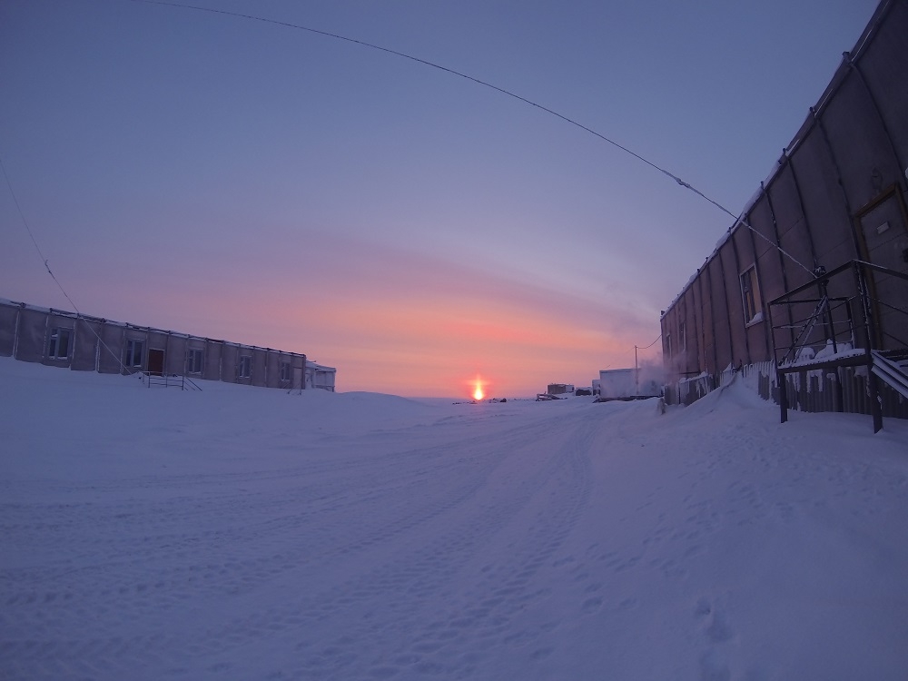 Погода хорошая, ясно, ветер 3-4 метра в секунду, температура -32° C.