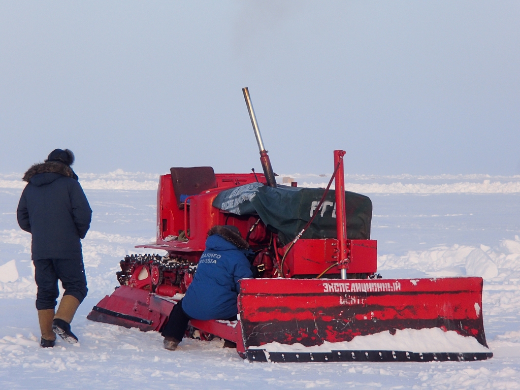 В настоящее время наши экипажи и еще 15 человек находятся на льдине в 59 км. от Северного полюса и приступают к оборудованию лагеря. Точные координаты 89°48′00″N 79°50′00″E , погода -32° C, толщина льда 1,4 м.