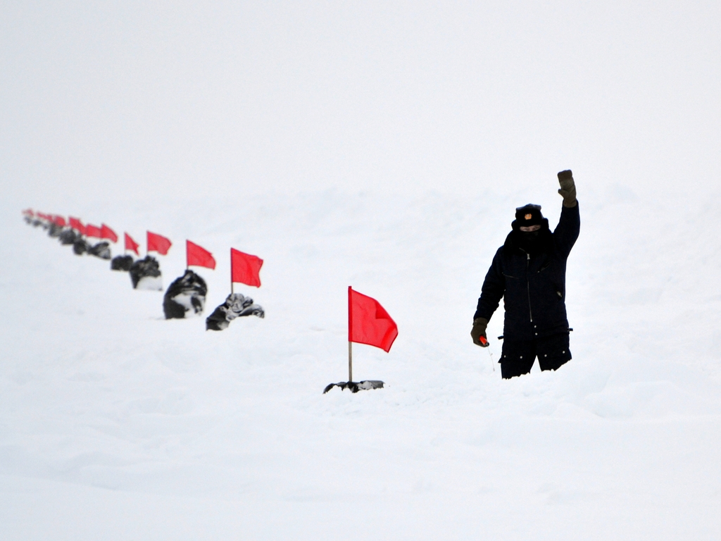Из Красноярска — к Подкаменной Тунгуске, потом Хатанга, Северная Земля. И наконец — вершина мира. Задача полярников на Северном полюсе — найти подходящую льдину, на которой разместится сезонная дрейфующая станция Барнео. В это время здесь самая подходящая температура для того, чтобы организовать лагерь — от -22 до -28 градусов.