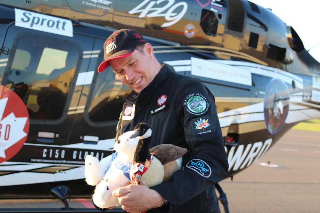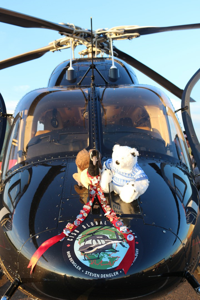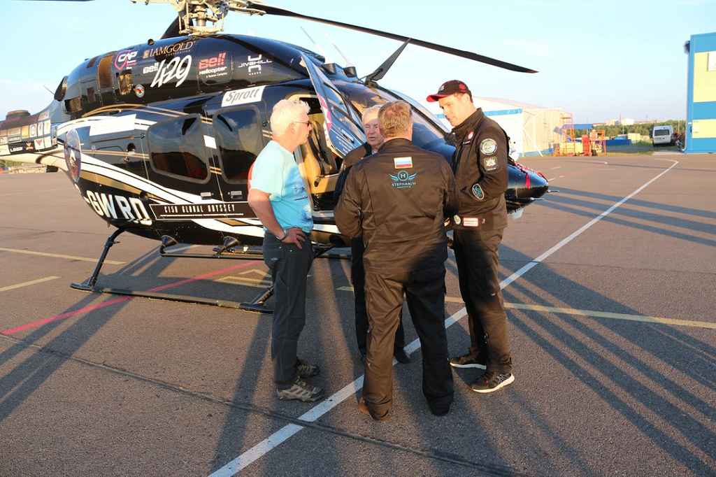 Кругосветный перелет на вертолете Bell 429 Global Ranger совершили: пилоты-любители отец и сын Боб и Стивен Денглеры и бывший лётчик-испытатель Роб Макдафф. Самому опытному путешественнику, улыбчивому Бобу, уже 77 лет!