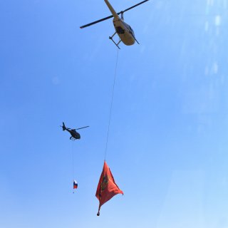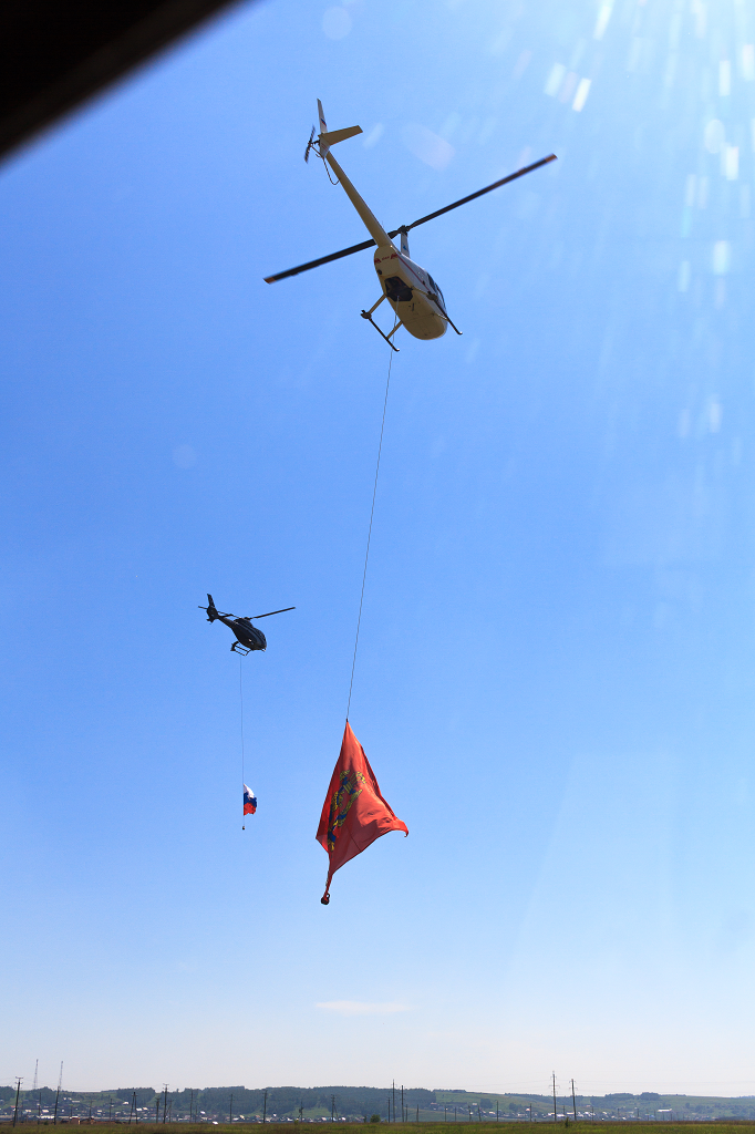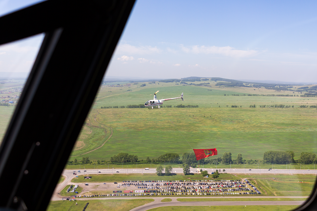 Воздушные суда авиакомпании «АэроГео» приняли участие в празднике, посвященном 83-й годовщине образования службы ГАИ-ГИБДД. 29 июня два вертолета Robinson R44 и вертолет EC120B пронесли праздничные флаги мероприятия над гоночной трассой "Красное кольцо" - местом проведения финала первенства по кольцевым автогонкам среди экипажей дорожно-патрульной службы Сибирского федерального округа.